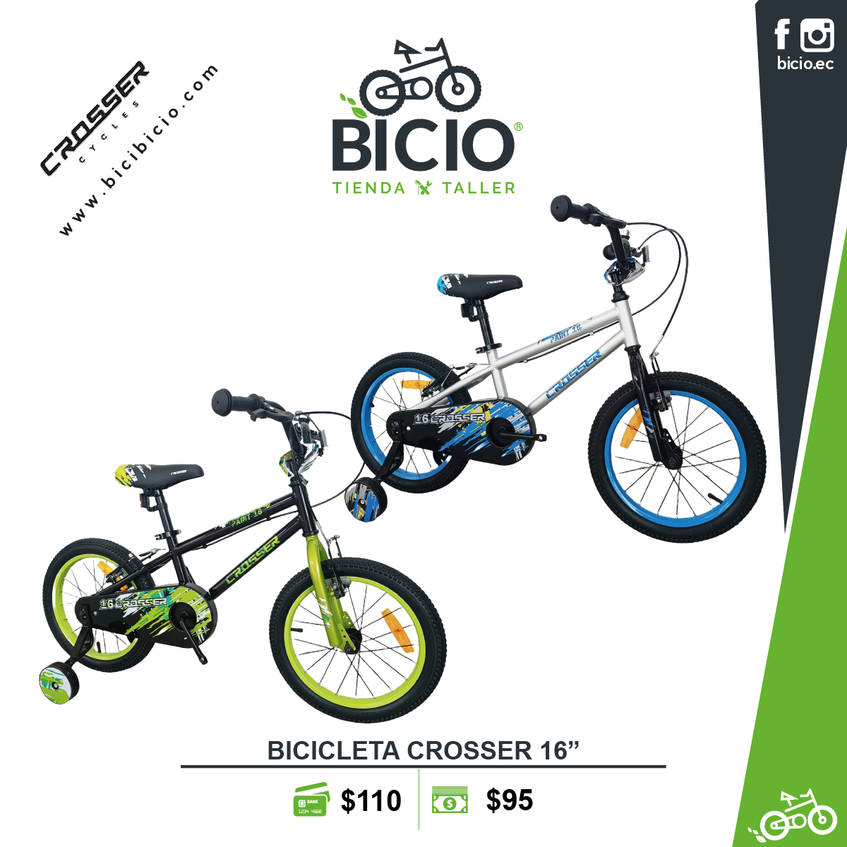 La bicicleta Crosser 16″ es la opción ideal para niños que están aprendiendo a montar. Con un diseño sencillo, un solo piñón y ruedas de apoyo, esta bicicleta ofrece estabilidad y facilidad de uso, permitiendo a los más pequeños disfrutar de sus paseos con confianza.