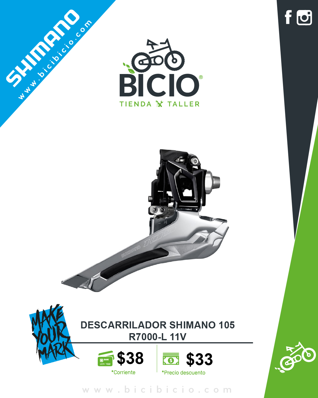 La nueva construcción del desviador SHIMANO 105 R7000 incorpora un tensor de cable integrado y un diseño de caja optimizado que es compatible con bicicletas de carretera con freno de disco. Está disponible en plateado y negro y en soportes de soldadura y abrazadera